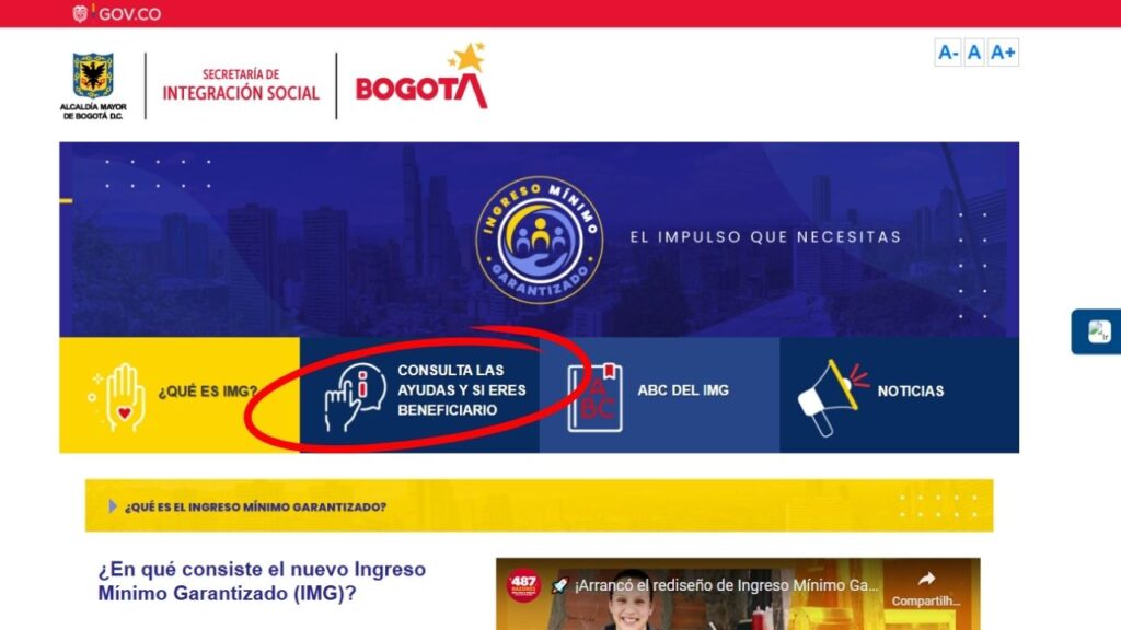 1️⃣ Ingresar a la página oficial del Ingreso Mínimo Garantizado.